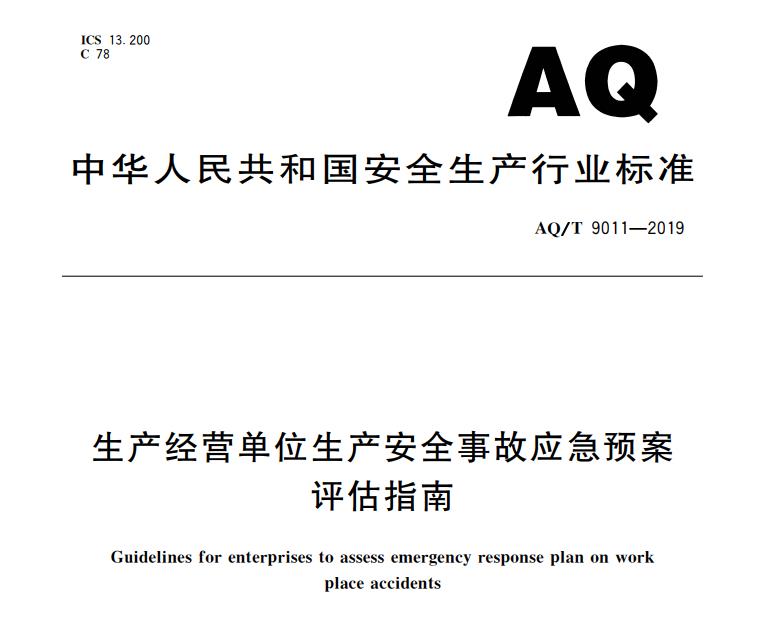 生产经营单位生产安全事故应急预案评估指南AQ/T 9011-2019