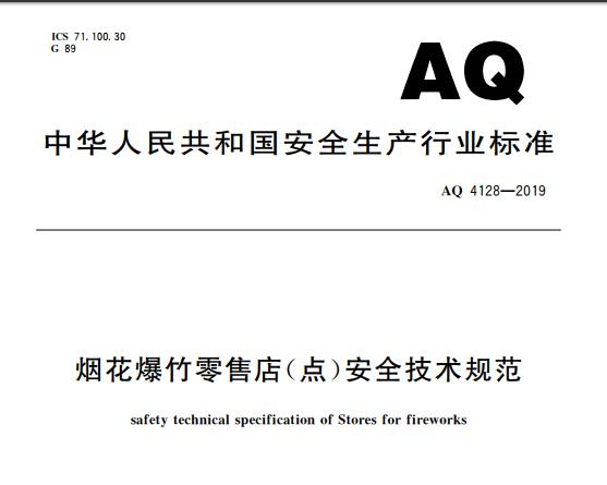 《烟花爆竹零售店(点)安全技术规范》AQ 4128-2019