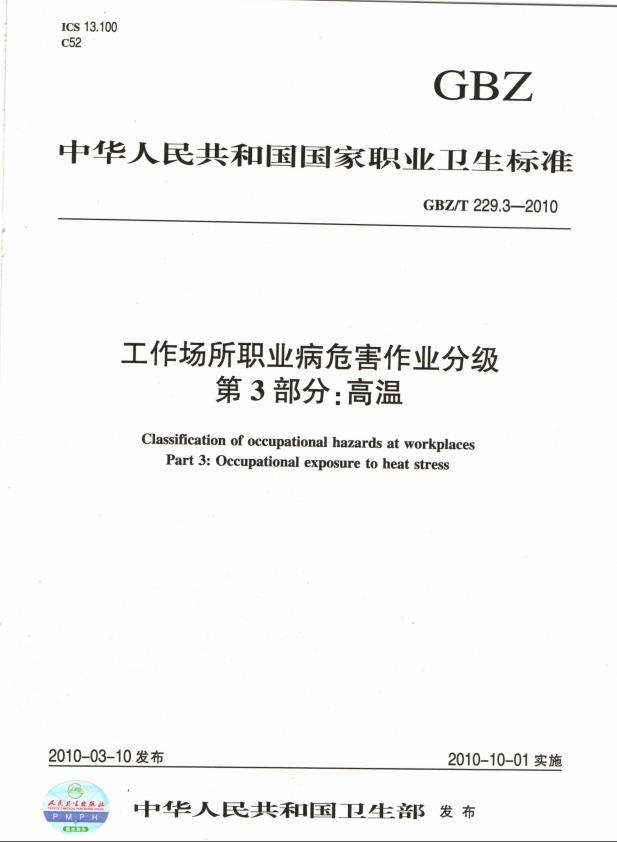 《工作场所职业病危害作业分级 第3部分 高温》 (GBZ/T 229.3-2010)