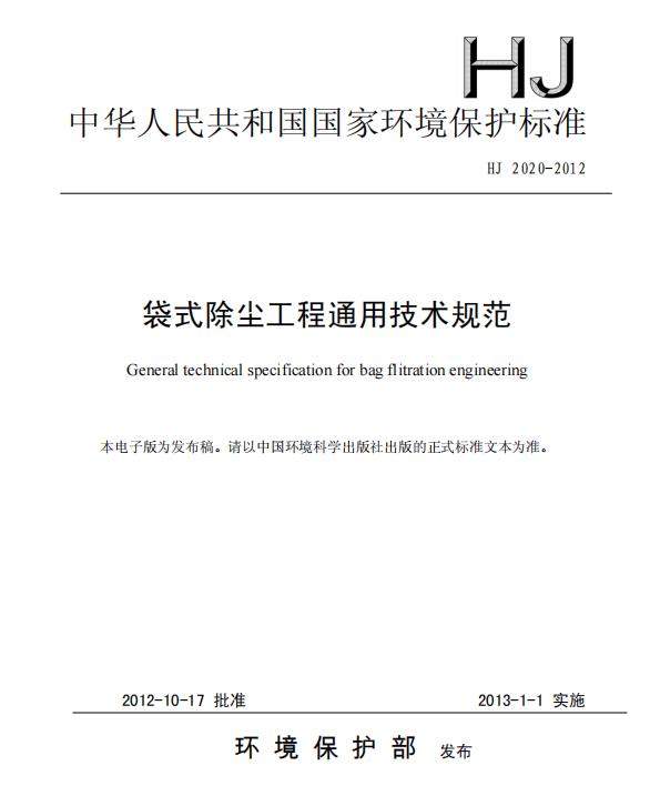 《袋式除尘工程通用技术规范》(HJ 2020-2012)