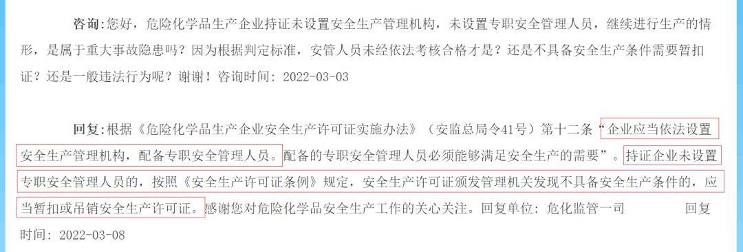 官方明确答复:企业安全生产管理机构必须作为独立部门设置。